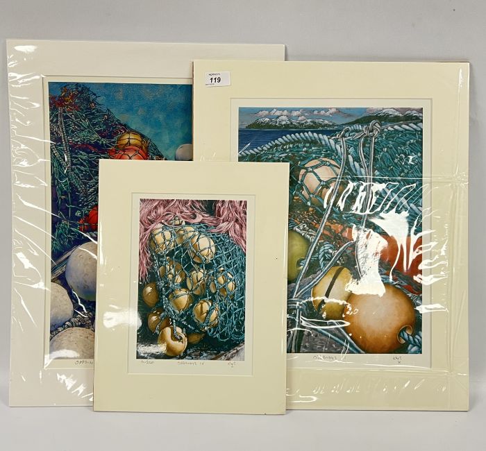 A GROUP OF 3 LIMITED EDITION SIGNED GICLEE PRINTS - TRAWLER RELATED - INCLUDING ODD BUOYS, SIGNED KRYS LEACH.