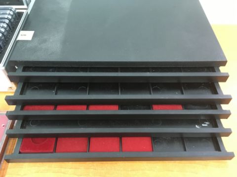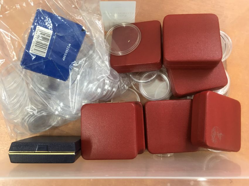 COINS: A BOX OF COIN COLLECTOR'S ACCESSORIES, ALBUMS, METAL 'FLIGHT' STYLE CASE WITH CAPSULES, FIVE DRAWER PLASTIC CABINET, LINDNER COIN TRAY, LIGHTHOUSE 'MUNZTABLEAUS' (6) ETC.