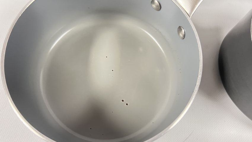 A GRADUATED SET OF 5 LE CREUSET SAUCEPANS + A FURTHER TWO GREEN PAN EXAMPLES AND A BOXED STAINLESS STEEL FISH POACHER.