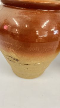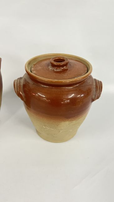 TWO VINTAGE STONEWARE STORAGE JARS.