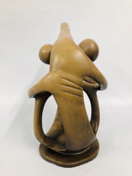 A LARGE SOAPSTONE FIGURE DEPICTING AN EMBRACE, H 36CM.