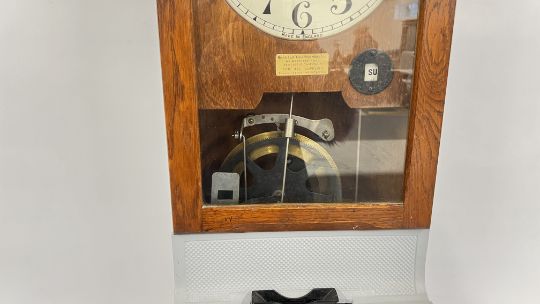 A VINTAGE NATIONAL ELECTRIC NORTH EAST TIME RECORDERS LTD CLOCKING IN MACHINE (WIRING REMOVED) - SOLD AS SEEN.