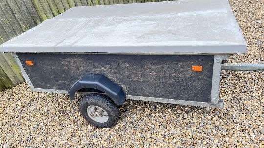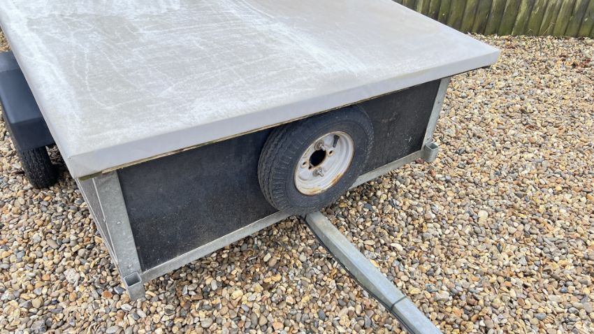 SINGLE AXLE FTX 6 FT CAR TRAILER, SPARE WHEEL, LADDER STAND AND COVER + STRAPS.