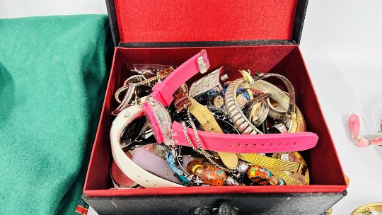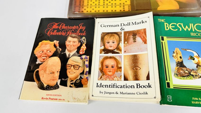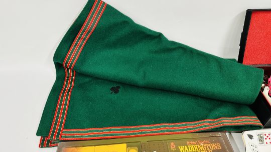 BOX OF ASSORTED COSTUME JEWELLERY, REFERENCE BOOKS, CARD GAMES, CARD TRAY, GAMES ETC.