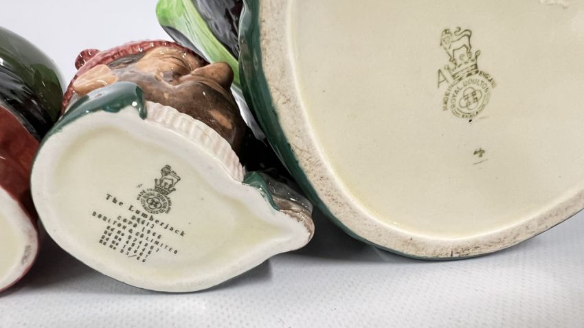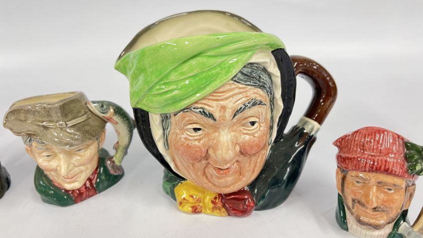 A GROUP OF 7 ROYAL DOULTON CHARACTER JUGS TO INCLUDE THE POACHER, ROBIN HOOD AND SMUGGLER EXAMPLES.