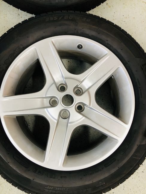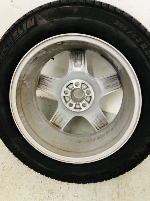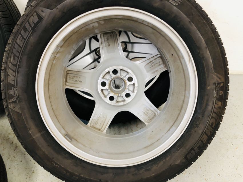 A SET OF 4 LAND ROVER DEFENDER (NEW SHAPE) 8.5J X 20 CH X 41.5 SPOKE ALLOYS, MICHELIN LATITUDE TOUR HP 255/60 R20 TYRES (APPROX 4000 MILES COVERED) "FOR OFF ROAD USE ONLY".