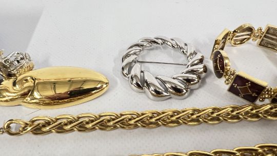 A GROUP OF DESIGNER JEWELLERY TO INCLUDE SWAROVSKI & NAPIER, MONET & JAEGER ETC.