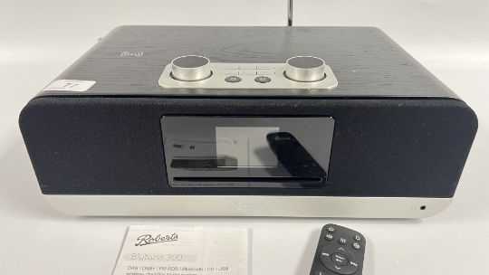 A ROBERTS BLUE TONE 300 DAB BLUE TOOTH CD USB WIRELESS CHARGING SOUND SYSTEM WITH REMOTE - SOLD AS SEEN.
