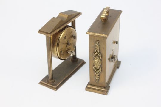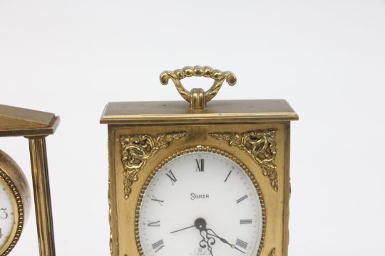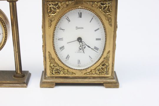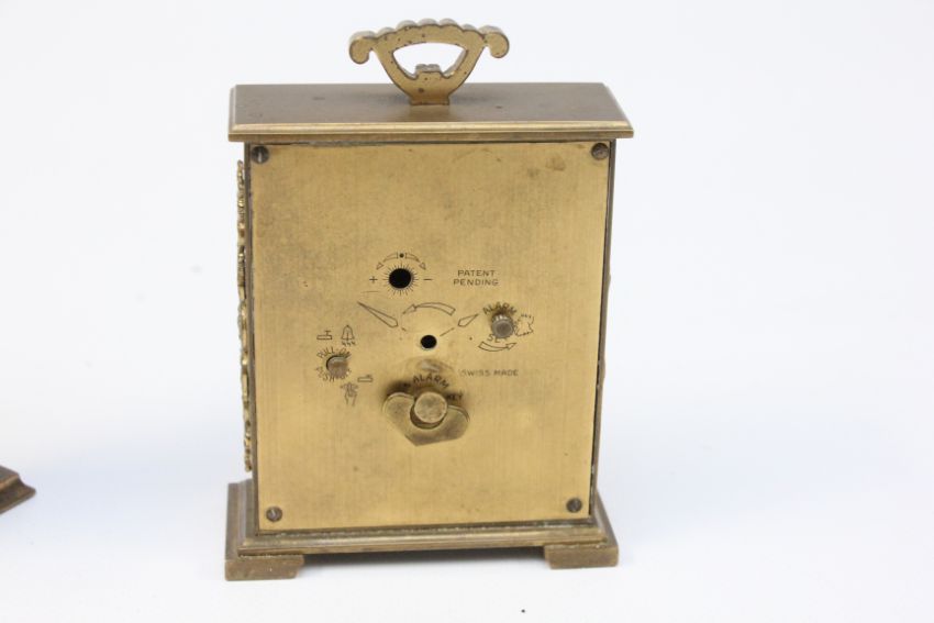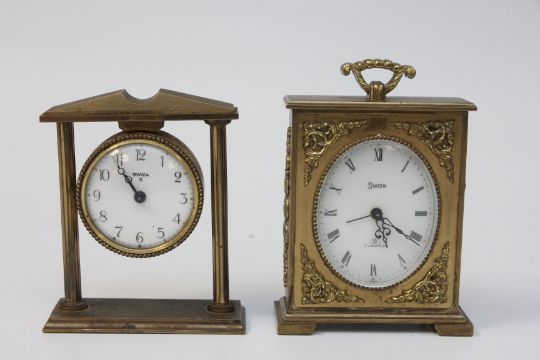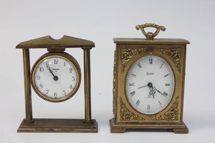 A VINTAGE "SWIZA" SWISS 7 JEWEL 8 DAY ALARM CLOCK + A FURTHER "SWIZA" EXAMPLE.