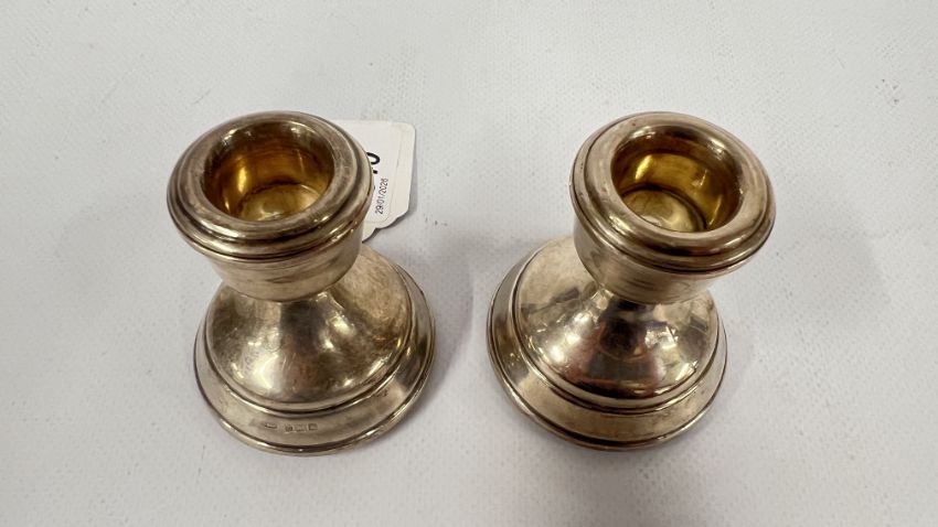 PAIR OF SILVER SQUAT CANDLESTICKS BIRMINGHAM 1971 HEIGHT 6.5CM.