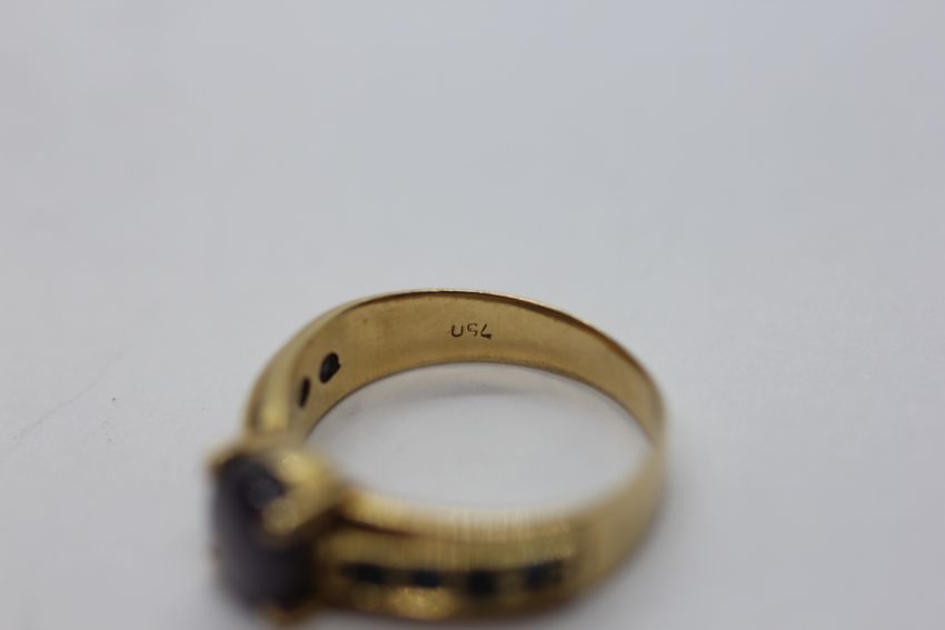 A MOONSTONE AND SAPPHIRE DRESS RING STAMPED 750.