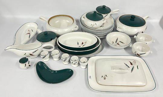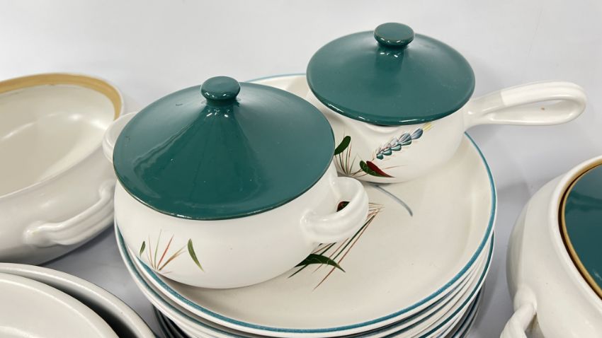 A QUANTITY OF DENBY WHEATSHEAF DINNERWARE, APPROX 30 PIECES.