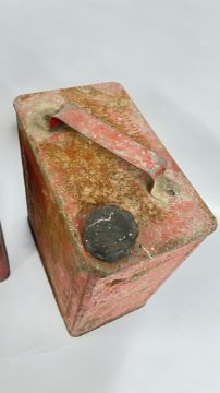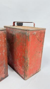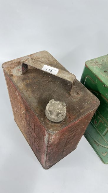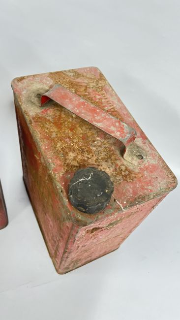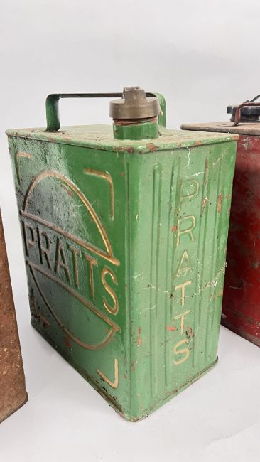 4 X VINTAGE FUEL CANS TO INCLUDE SHELL AND PRATTS EXAMPLE.