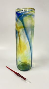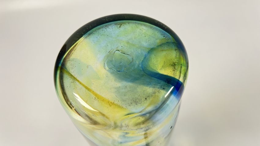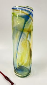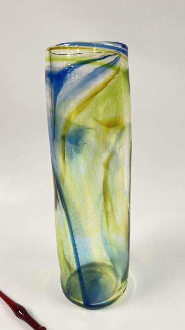 A STUDIO ART GLASS VASE, BEARING INDISTINCT SIGNATURE ALONG WITH AN ART GLASS PEN.