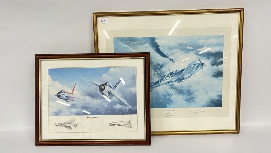 FRAMED AND MOUNTED "VICTORY OVER DUNKIRK" PRINT, SIGNED BY ROBERT TAYLOR 53 X 63CM INCLUDING FRAME PLUS "LIGHTNINGS" PRINT BY IAIN WYLLIE, 38 X 48CM INCLUDING FRAME.