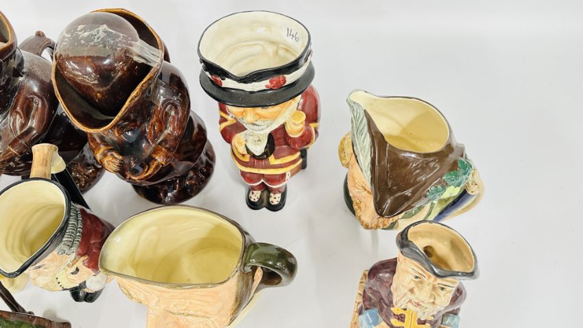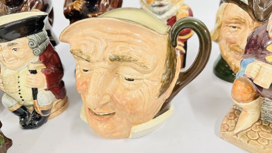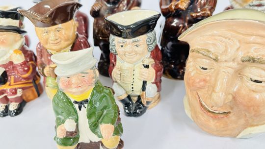 A GROUP OF ASSORTED CHARACTER / TOBY JUG TO INCLUDE 3 ROYAL DOULTON EXAMPLES ETC.