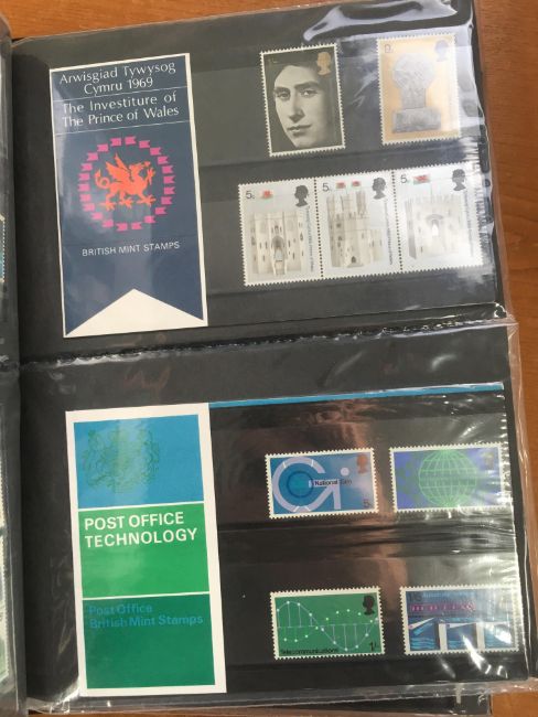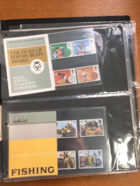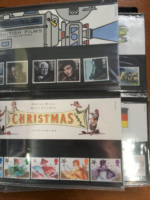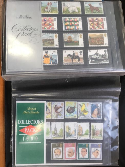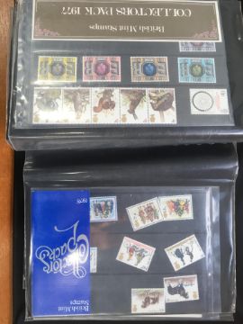 STAMPS: BOX WITH GB PRESENTATION PACKS 1964-84 IN TWO ALBUMS AND YEAR PACKS 1968-82 IN ANOTHER ALBUM.