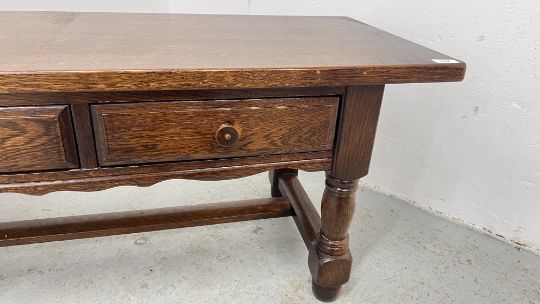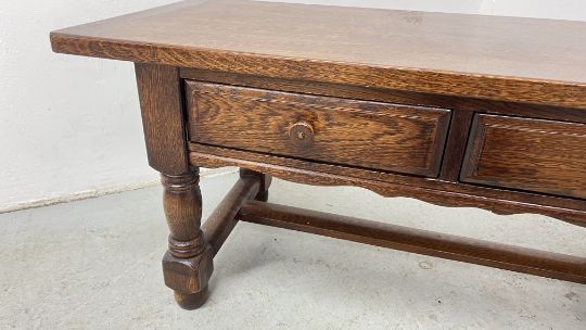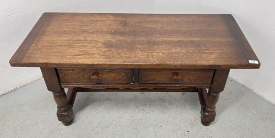 OAK 2 DRAWER COFFEE TABLE, W 114, D 49, H 50CM.