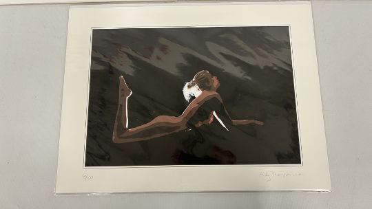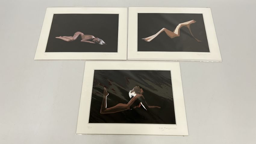 A GROUP OF 3 LIMITED EDITION ABSTRACT NUDE STUDIES BEARING PENCIL SIGNATURE MICKY THOMPSON.