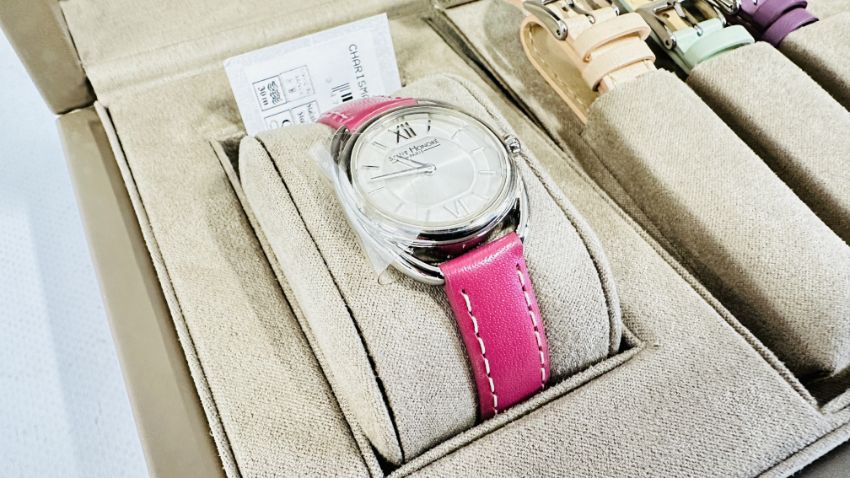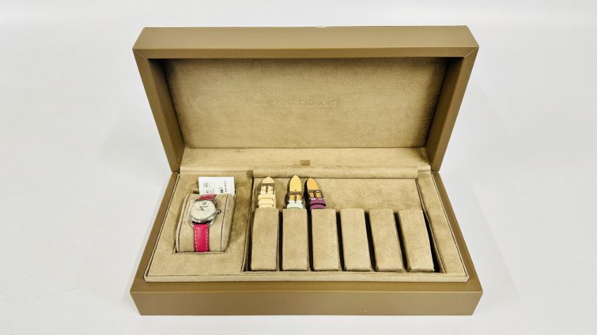 SAINT HONORE LADIES DESIGNER WATCH IN GIFT SET JEWELLERY BOX INTERCHANGEABLE LEATHER STRAPS (BOXED AS NEW WITH TAGS).