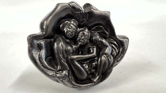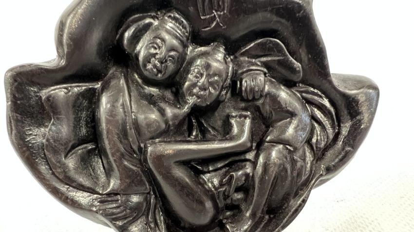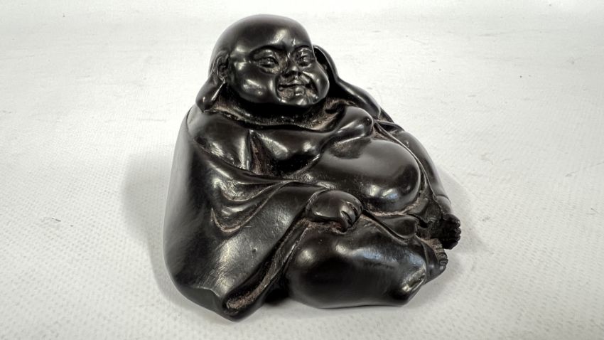 A BUDDHA WITH AN EROTIC SCENE TO THE UNDERSIDE.