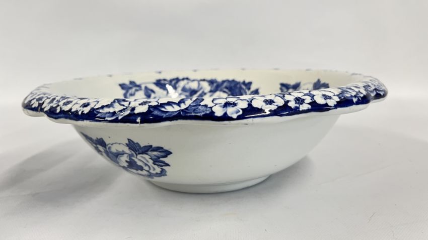 A WADAMS BLUE AND WHITE CHRISTMAS ROSES WASH JUG AND BOWL.