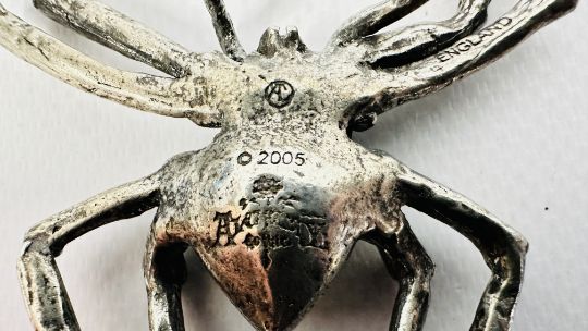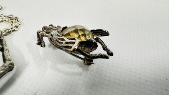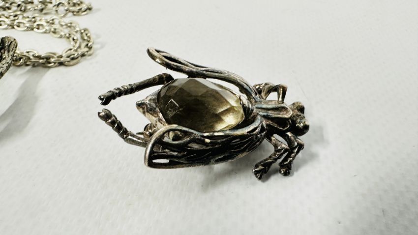 ALCHEMY GOTHIC SPIDER PENDANT ON CHAIN + SILVER SCORPION BROOCH AND SILVER BEETLE BROOCH.