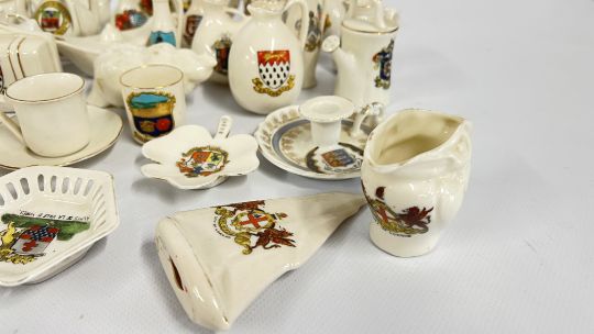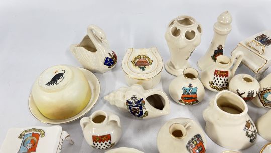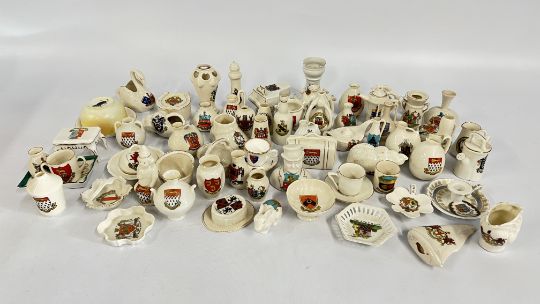 A BOX CONTAINING AN EXTENSIVE COLLECTION OF ASSORTED CRESTED WARE TO INCLUDE TUSCAN, GRAFTON AND SHELLEY EXAMPLES.