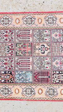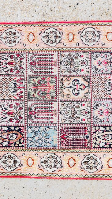 A PERSIAN QUM STYLE RUG, 132 X 77CM.