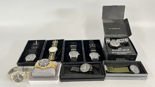9 BOXED DESIGNER WRIST WATCHES WITH EXAMPLES TO INCLUDE OLEVS, BERING, 4 X INFANTRY ETC.