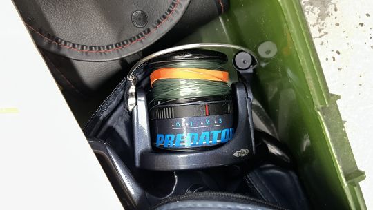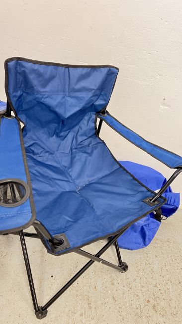 TWO FOLDING CHAIRS AND A CRANE CARRY BAG ETC., CANTILEVER BOX CONTAINING ASSORTED FISHING ACCESSORIES, FLOATS AND WEIGHTS, MITCHELL PREDATOR 60 REEL + A LEEDA DUO MULTI FUNCTION TWIN TIP CONCEPT 12FT 3 PIECE ROD.