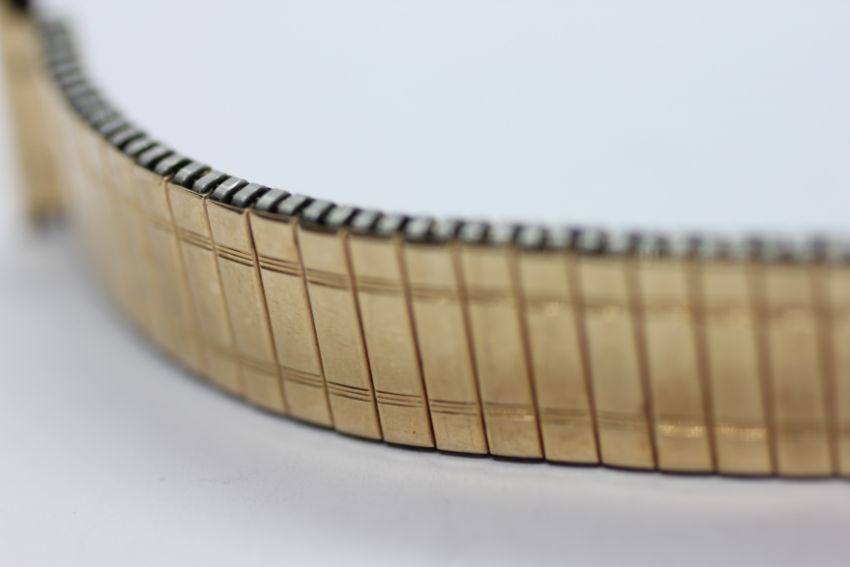 A 9CT GOLD METAL CORE VINTAGE WATCH STRAP.