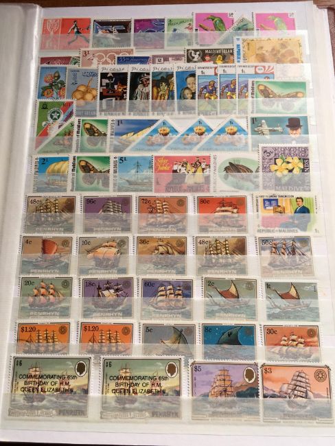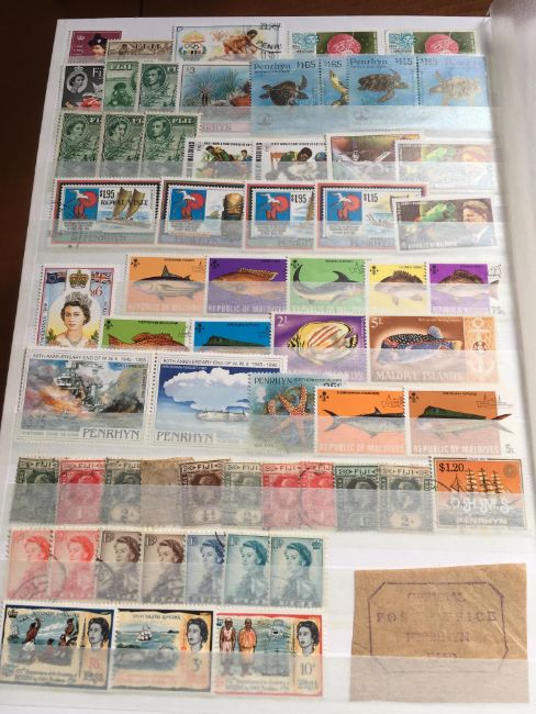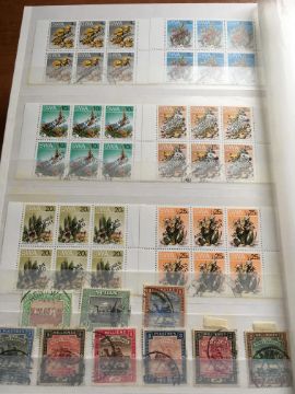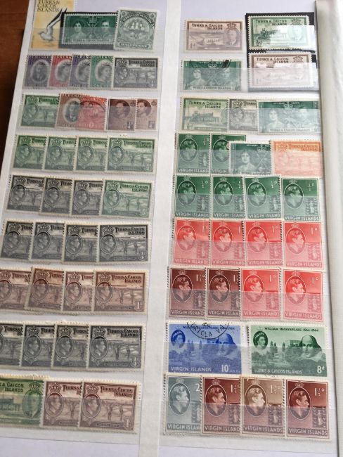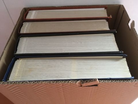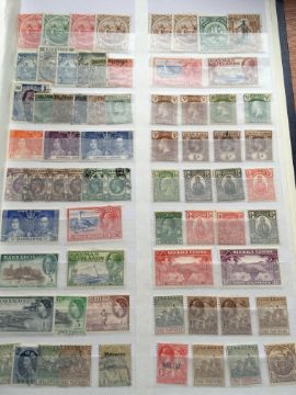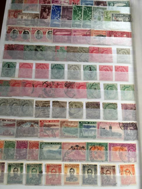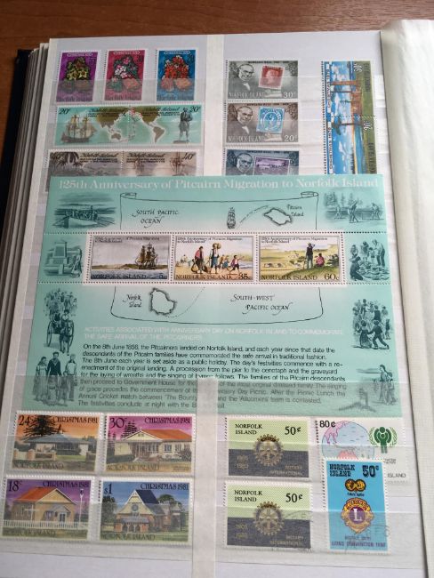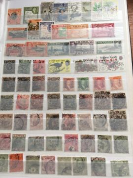 STAMPS: BOX WITH COMMONWEALTH IN FOUR LARGE STOCKBOOKS, NORFOLK ISLAND, ST. LUCIA, HONG KONG, CEYLON, INDIAN STATES, CANADA, ETC.