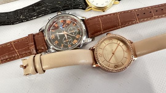 A GROUP OF ASSORTED WRIST WATCHES TO INCLUDE DESIGNER BRANDED EXAMPLES.