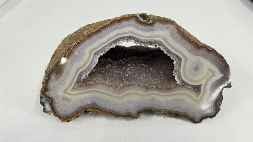 AN AMETHYST GEODE ROCK CRYSTAL SAMPLE.