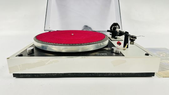 THORENS TD 160 MKII TURNTABLE WITH INSTRUCTIONS AND ORIGINAL BOX (PERSPEX COVER HINGES A/F) - SOLD AS SEEN.