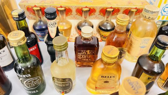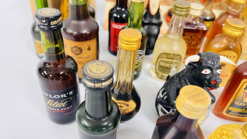 A BOX OF ASSORTED SPIRIT MINIATURES TO INCLUDE VODKA, WHISKY, PORT AND BRANDY EXAMPLES ETC.