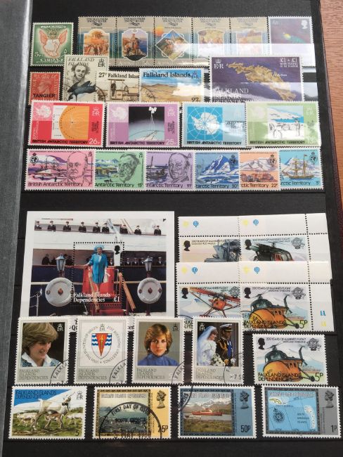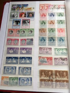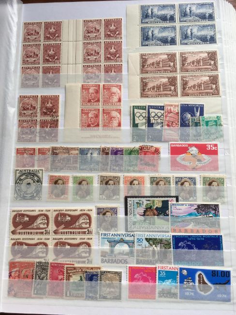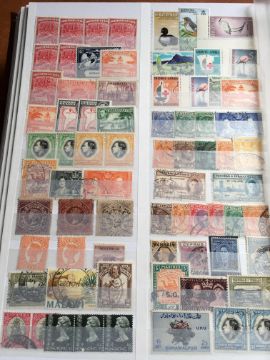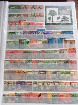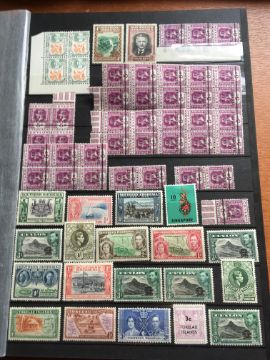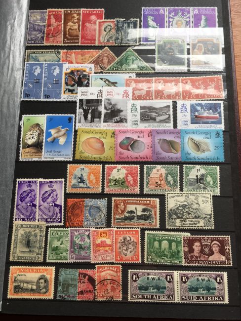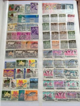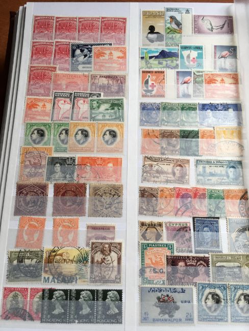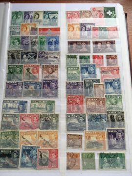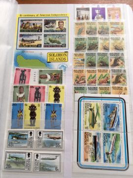 STAMPS: BOX WITH COMMONWEALTH IN FOUR LARGE STOCKBOOKS, NEW ZEALAND, BERMUDA, MALTA, ADEN, PAPUA NEW GUINEA, FALKLANDS, SOLOMON ISLANDS, ASCENSION, ETC.