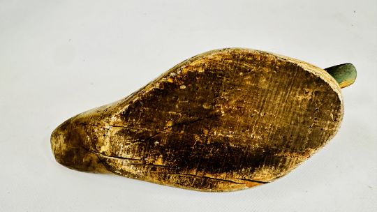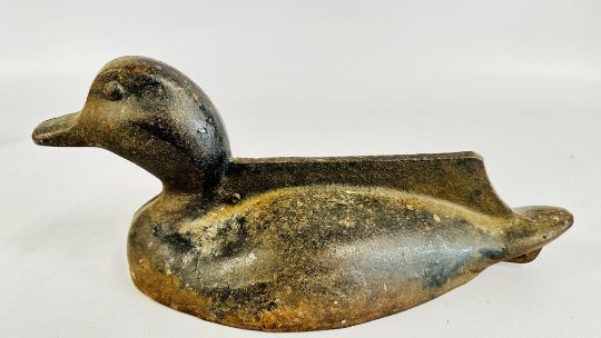 A VINTAGE CAST BOOT SCRAPE IN THE FORM OF A DUCK + A VINTAGE PANTED WOODEN DUCK DECOY.