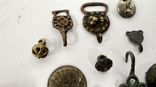 A GROUP OF METAL DETECTOR FINDS.