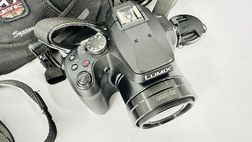 PANASONIC LUMIX 20-1200 WITH TRIPOD AND CARRY CASE ALONG WITH A FURTHER PANASONIC LUMIX DMC-FZ62 WITH LENSES TO INCLUDE PANASONIC DMW-LC55 AND A LUMIX TELE CONVERSION 1.7X LENS.