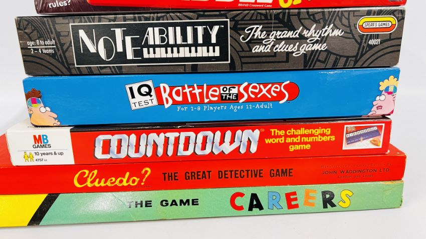 A BOX OF ASSORTED GAMES TO INCLUDE COUNTDOWN & BATTLE OF THE SEXES, BEAT THE DRUM ETC.