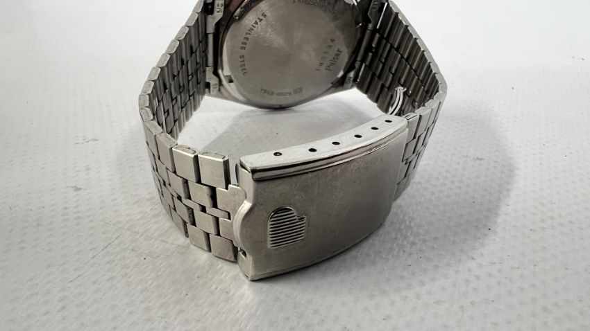 PULSAR Y563-8329 DESIGNER WRIST WATCH ON STAINLESS STEEL STRAP, PLUS A VINTAGE ELCO WRIST WATCH ON AN EXPANDABLE STRAP.