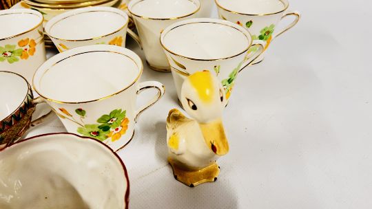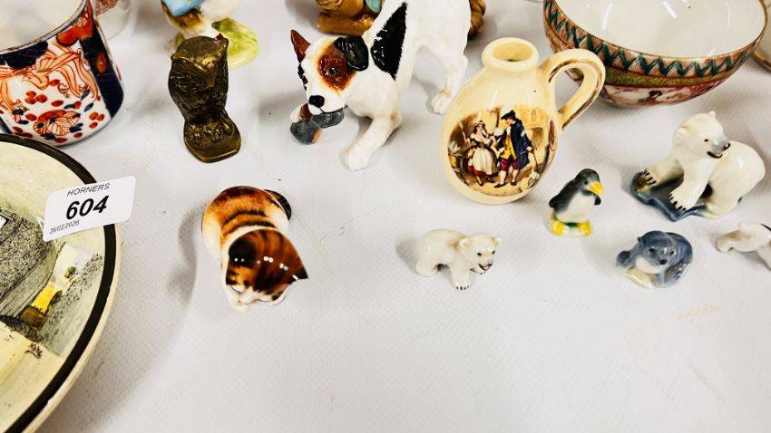 A GROUP OF COLLECTABLE CERAMIC ITEMS TO INCLUDE DOULTON TERRIER, BESWICK PETER RABBIT, BESWICK DUCK, PENDELFIN POOCH, WESTERN GERMANY SALT AND PEPPER SQUIRREL, BESWICK COTTAGEWARE, DOULTON PLATES, PHOENIX CHINA TEA SERVICE ETC + SMALL GROUP OF ORIENTAL CERAMICS.