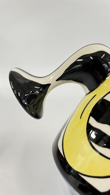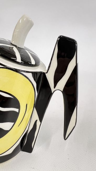 A DESIGNER LORNA BAILEY TRUMPET TEAPOT, BEARING SIGNATURE, H 17CM.