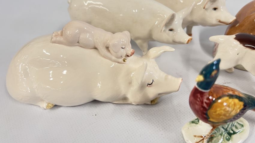 QUANTITY OF BESWICK ANIMALS INCLUDING DEER 721, DOGS, PIGS AND FAMILY OF RABBITS.
