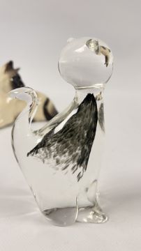 A GROUP OF COLLECTOR'S CABINET CAT ORNAMENTS TO INCLUDE BESWICK, ROYAL DOULTON, FRANKLIN MINT AND LLADRO EXAMPLES + TWO GLASS EXAMPLES.