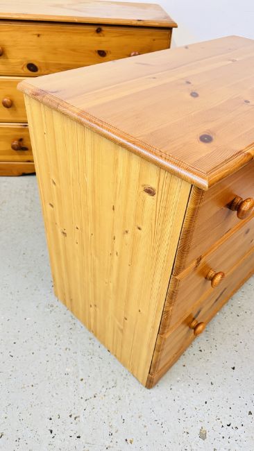 3 PIECES OF PINE FRONTED BEDROOM FURNITURE TO INCLUDE 5 DRAWER CHEST AND PAIR OF 3 DRAWER CHESTS.