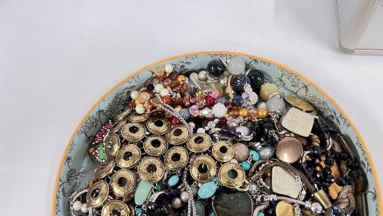 THREE BOXES CONTAINING AN EXTENSIVE GROUP OF ASSORTED COSTUME JEWELLERY, BEADED NECKLACES, BANGLES, PENDANTS, EARRINGS AND NECKLACES ETC.