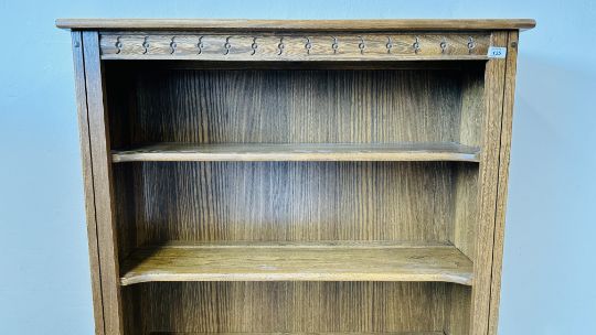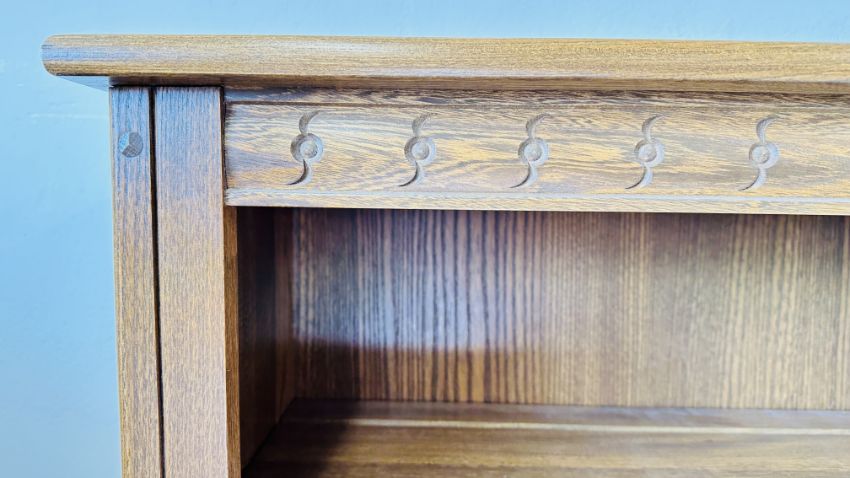 AN ERCOL FULL HEIGHT FOUR TIER BOOKSHELF WITH CUPBOARDS TO BASE, HEIGHT 196CM.